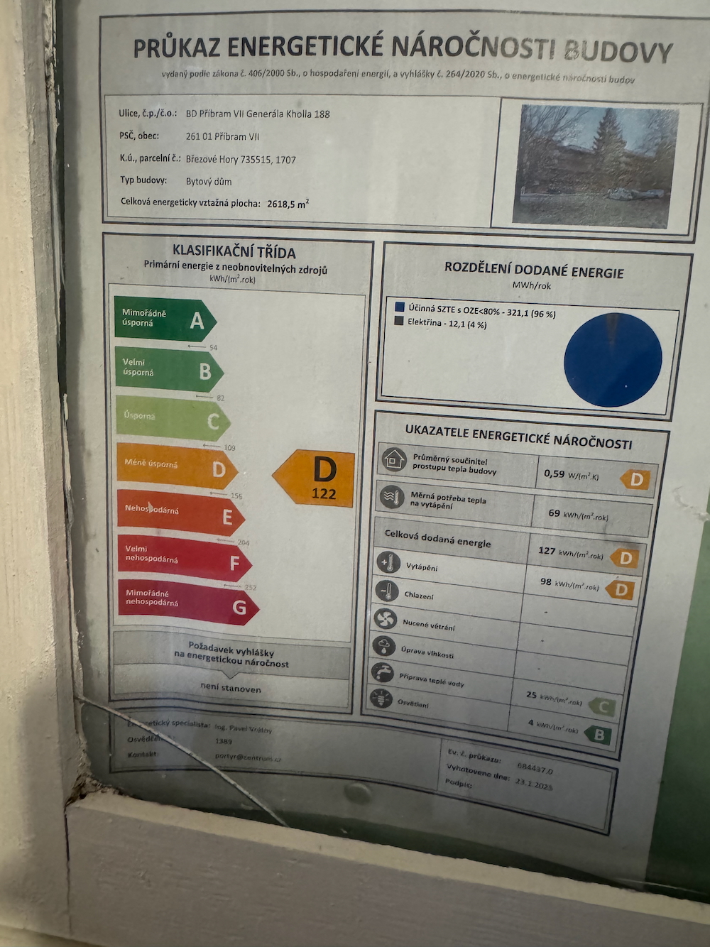Dům je částečně zateplený, s opravenou střechou a má zánovní výtah. Vytápění a TUV z dálkového zdroje. Parkování na přilehlém parkovišti.